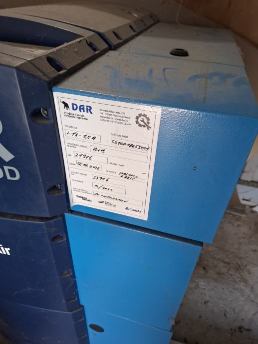 Jedan kompresor je potpuno ispravan, drugi treba servis. Cijena ispravnog je 5.000,00 eura, ovog kojem treba servis 1.200,00 eura. U kompletu ide i spremnik i sušač, odnosno cijeli sustav. Cijeli sustav je kupljen nov 2020. godine i tada plaćen 116.550,00 kuna.