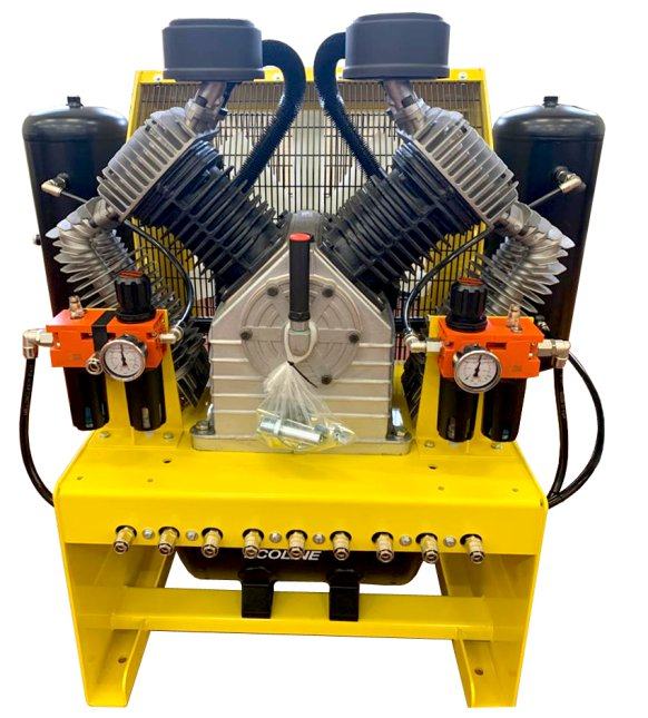 S kapacitetom od 2000 litara u minuti i radnim tlakom od 9-11 bara, ovaj kompresor omogućuje visoku produktivnost i pouzdan rad za napajanje pneumatskih alata kao što su pneumatske škare, tresači maslina, pilice i mnogi drugi uređaji koji zahtijevaju visok kapacitet protoka zraka.