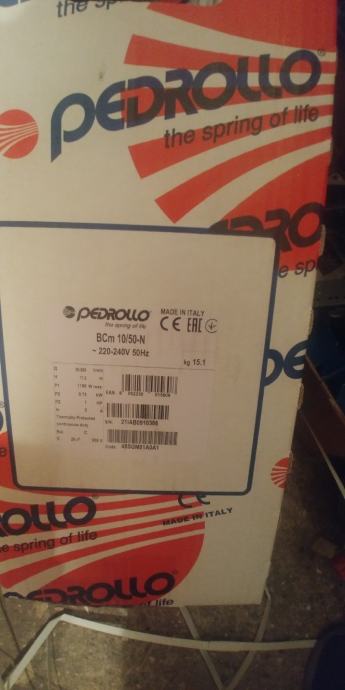 Muljna pumpa Pedrolo 0.75kw 220V 600L/min visina bacanja 11m 2 cola izlaz.