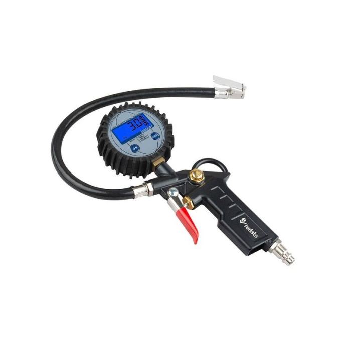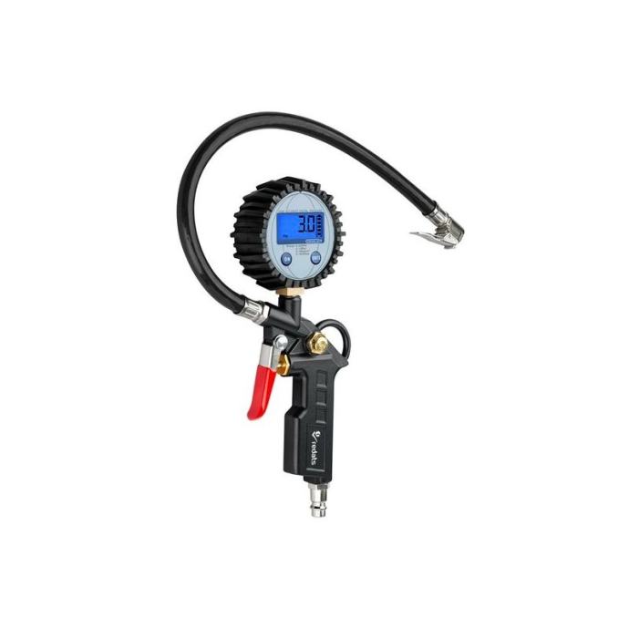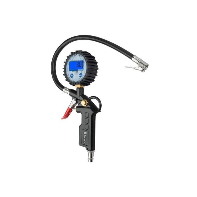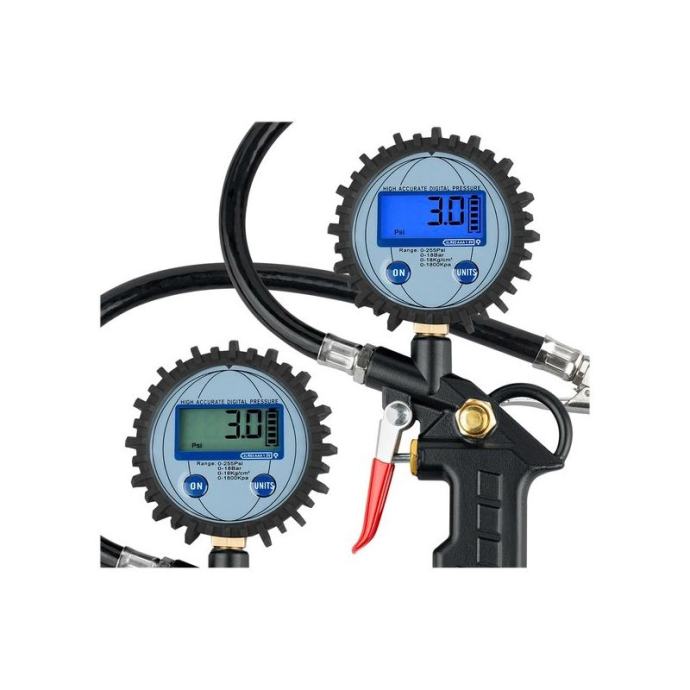 pištolj za pumpanje sa elektronskim manometrom, napajanje sa dvije AAA baterije, gumeni poklopac manometra, ventil za ispuštanje zraka ispod palca, mogućnost podešavanja jedinica: Psi, Bar, Kg/cm2, Kpa raspon 0-255 Psi, 0 -18 bara, 0-18 Kg/cm2, 0-1800 Kpa, standardni brzi utikačmaterijal; aluminijokidač s gumenim poklopcem,dužina crijeva: 35 cmPrimjena:ovaj pištolj za gume radit će u svakom servisu za gume i automobilecrijevo duljine 35 cm omogućuje jednostavan pristup gumamapraktičan radventil za ispuštanje zraka nalazi se ispod vašeg palca - njime možete jednostavno upravljati.lako čitanjepištolj ima veliki elektronički mjerač tlaka - omogućit će vam jednostavno očitavanje trenutne vrijednosti tlakaManometar u izdržljivom kućištumovaj pištolj je teško oštetiti - manometar je u gumiranom poklopcdakle, nema rizika da se iznenada ošteti, na primjer nakon udarca o tlo.]]>