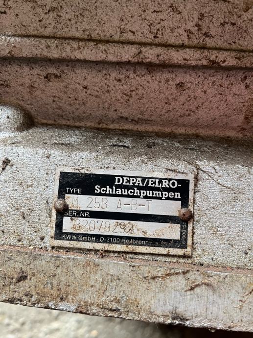 Prodajem rabljenu pumpu 3' proizvođača DEPA/ELRO, tip M 25B A-B-T. Pumpa je montirana na metalnu konstrukciju s nosačima koja omogućuje stabilno postavljanje i lakše rukovanje. Opremljena je s dva priključka te manometrom.