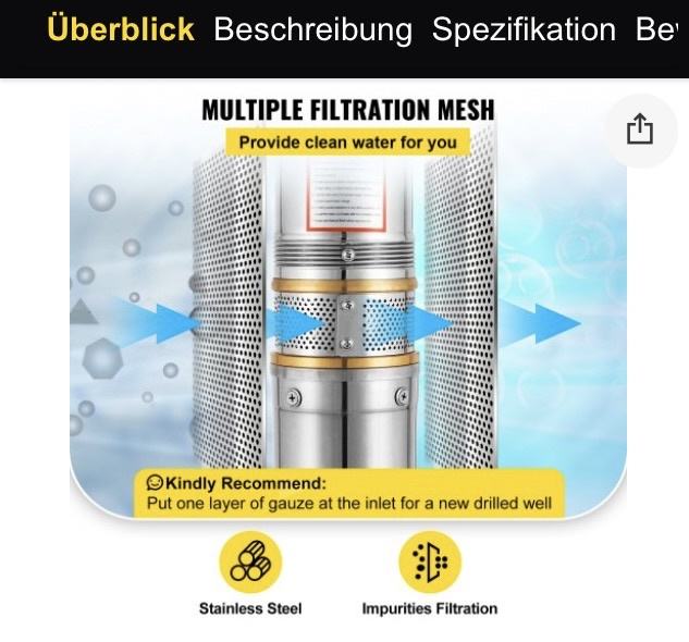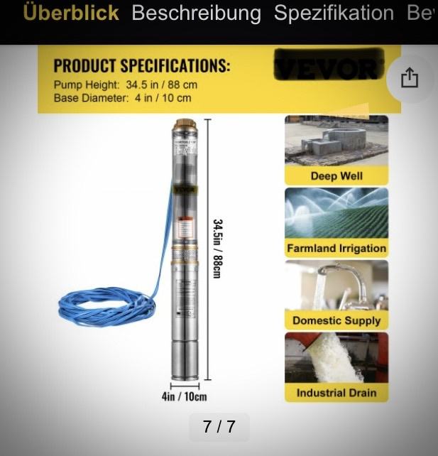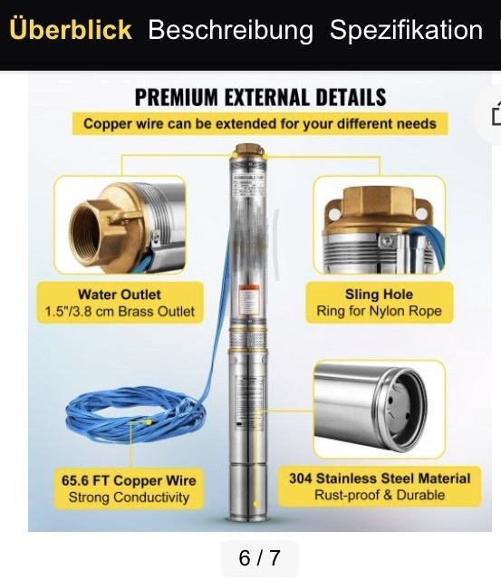 Izvanredna izvedba: Potopna pumpa za bunar opremljena je vanjskim nepovratnim ventilom, koji se može montirati okomito, pogodan za kućnu upotrebu. Hermetički zatvoreni motor je termički zaštićen kako bi se spriječilo pregrijavanje.