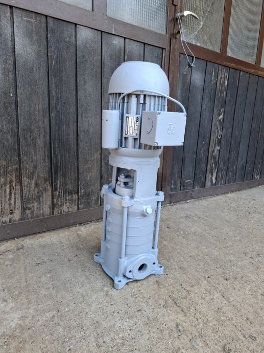 Pumpa je peterostepena , monofazna, 1.1 kW , ulaz i izlaz na prirubnicu (2 rupe), max tlak pumpe 5.4 bara...