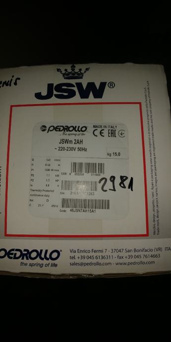 Pumpu hidroforsku JSWm2A novu 220V firme PEDROLO Italija prodajem