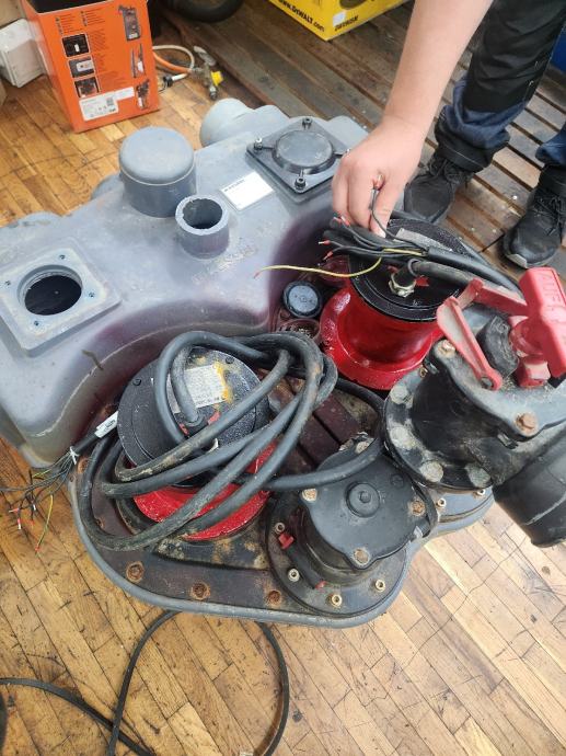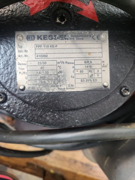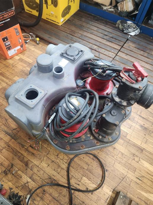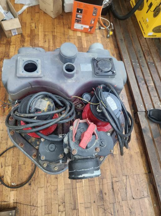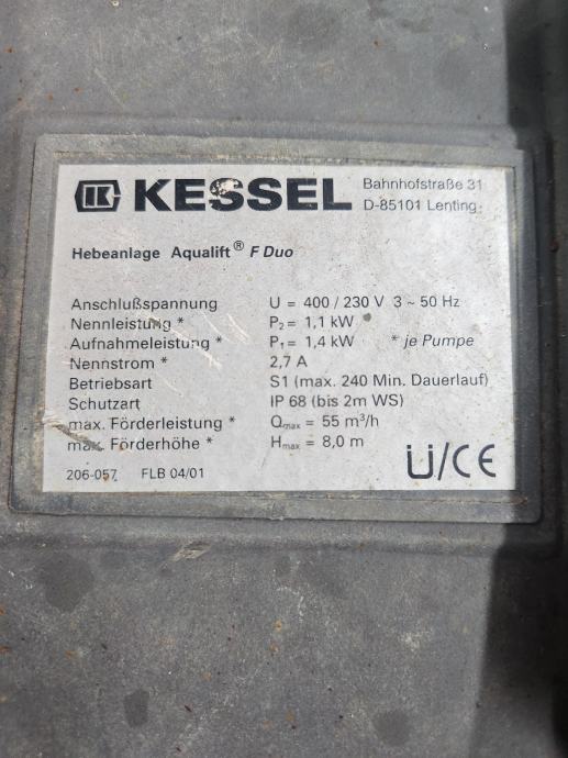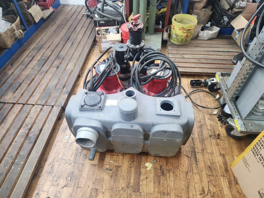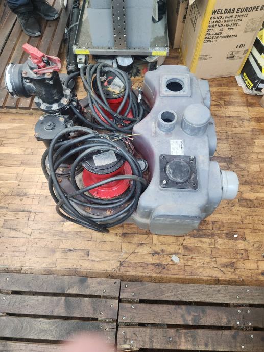 Podizna stanica, pumpa za otpadne vode iz kucanstva ili poslovnih objekata, jednostavna za monrazu u podrumima, ulazna snaga 1,4 kW, snaga p2 1,1 kW 2,7 A tezina 98 kg. Potpuno sredjena, servisirana u Pumpa servisu, Osijek.