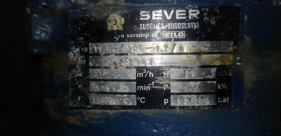 Prodajem pumpu za vodu; elektromotor i cjelokupna pumpa je marke Sever (Subotica - Jugoslavia), typa ZK 100 L4.