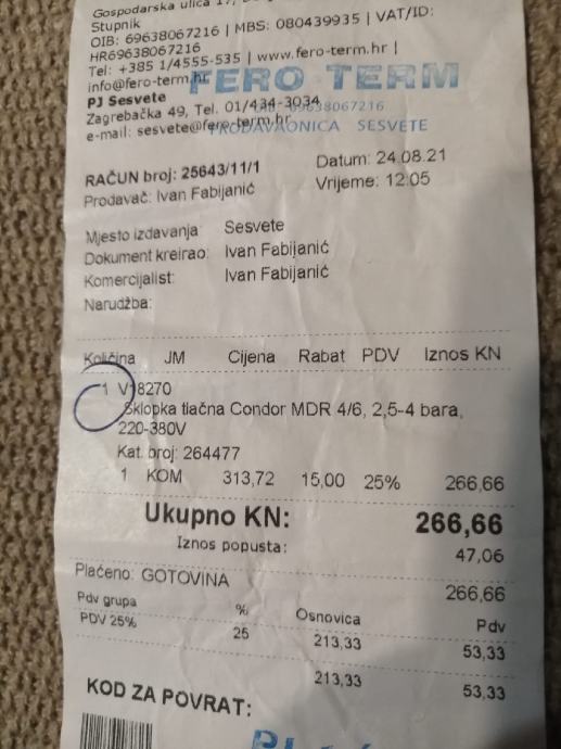 Prodajem sklopku za hidrofor nova nekorištena 20 eura