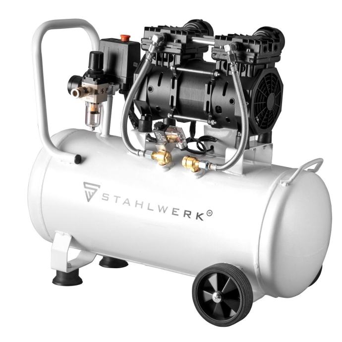 STAHLWERK -ov kompresor sa komprimiranim zrakom ST 310 Pro ima spremnik od 30 L i izlazni tlak od 10 bara. Kompresor radi s motorom bez četkica bez trošenja, bez ulja i vrlo tiho. S težinom od samo 23 kg, šapat kompresor jednostavan je za transport i vrlo je kompaktan. Ovaj kompresor je najlakši i najjači u svojoj težinskoj klasi!