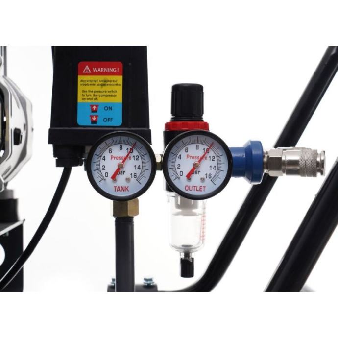 ergonomski - ima reduktor tlaka opremljen inovativnim mehanizmom za regulaciju, veliki manometar koji se nalazi na kompresoru u položaju koji olakšava očitavanje parametara te odvodnu slavinu koja je jednostavna za korištenje
