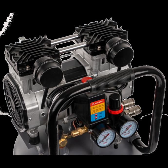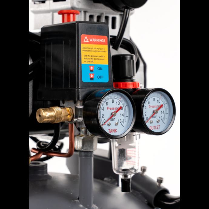 ima reduktor tlaka opremljen inovativnim mehanizmom za regulaciju, veliki manometar koji se nalazi na kompresoru u položaju koji olakšava očitavanje parametara te odvodnu slavinu koja je jednostavna za korištenje.