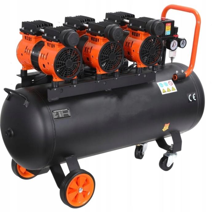 S kapacitetom od 100 l i protokom od 580 l/min, uređaj osigurava stabilan i učinkovit rad čak i uz veće potrebe za zrakom. Njegov dizajn bez ulja eliminira potrebu za dopunjavanjem i zamjenom ulja te osigurava veću čistoću zraka. Kompresor doseže maksimalni tlak od 8 bara i napaja se naponom od 230 V , što omogućuje udobnu upotrebu u standardnim uvjetima.