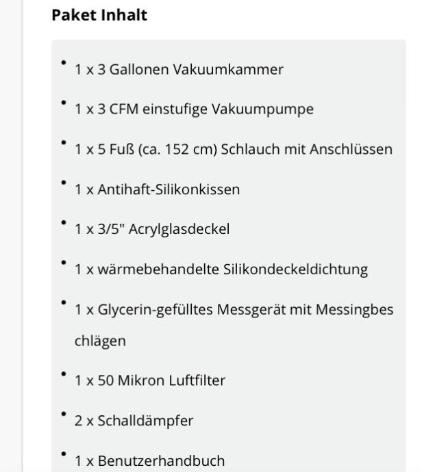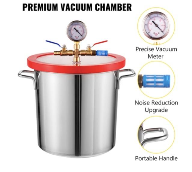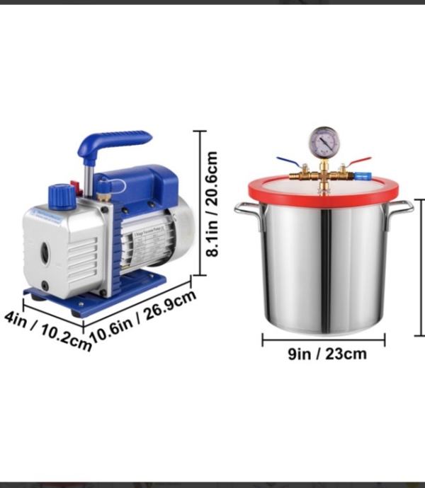 Ovaj set vakuum pumpi 3 CFM 1/4 HP koristi se za otplinjavanje silikona, epoksida, eteričnih ulja, uretana itd. Vakuumska komora osigurava sigurno i pouzdano sredstvo za transport dijelova osjetljivih na kontaminaciju i vlagu. Vakuumska komora i komplet za pumpu uključuju silikonsku brtvu koja se ne lijepi, crijevo od 5 stopa (152 cm) s priključcima, 3/5" (1,5 cm) akrilni poklopac, zračni filter od 50 mikrona i druge dodatke za vašu praktičnu upotrebu