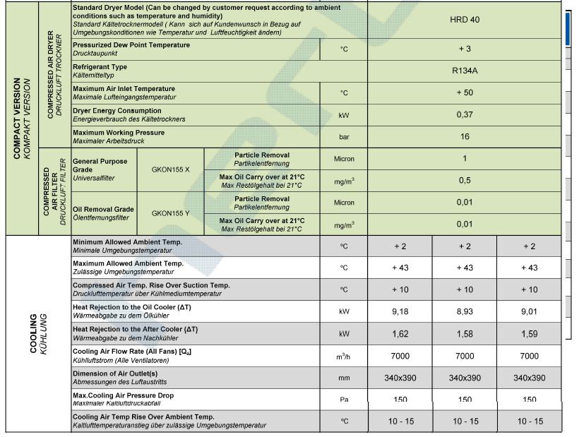 - jedinica se sastoji od vijčanog kompresora, sušača zraka i tlačne