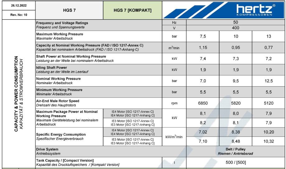 Hertz kompresor HGS7,5 COMPACT 10bar-