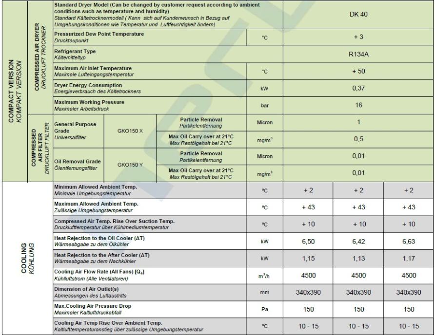 - jedinica se sastoji od vijčanog kompresora, sušača zraka i tlačne