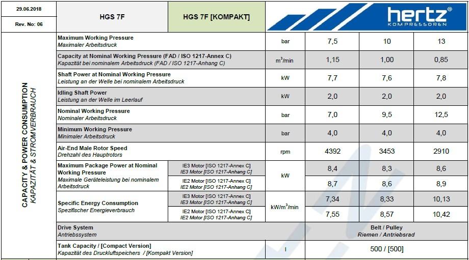 VIJČANI KOMPRESOR HERTZ HGS7F COMPACT 7,5kW 10 BAR /1000 l/min - NOVO