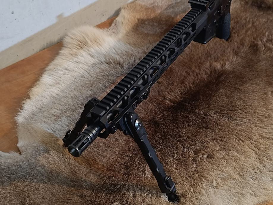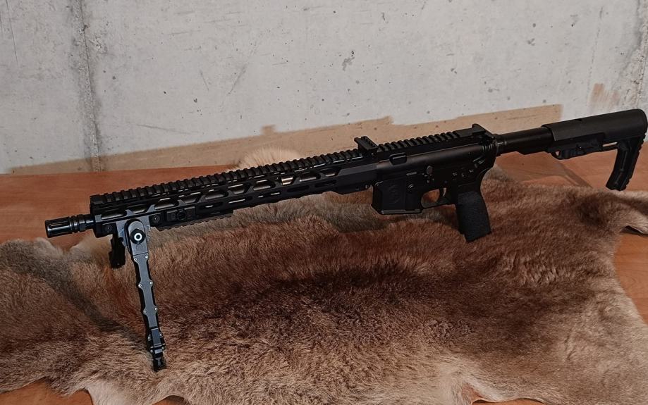 Prodajem poluautomat AR15 platforma u kalibru 300 AAC Blackout. Cijev 16", besprijekorna. Sa bipod nogicama. Uz AR15 dolaze nišani pod 45° , te sakupljač čahura. Municija 300 aac je širokog spektra, te je pogodna za lov ali i streljaštvo. Uz pušku je moguće kupiti i crvenu točku (Aimpoint, Vortex).