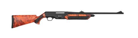 Poluautomatski sintetički karabin kalibra .30-06, boja: maskirna narančasta , dužina cijevi 56cm, nišani, spremnik 2+1, ugrađena aluminijska šina i alke za remen.
