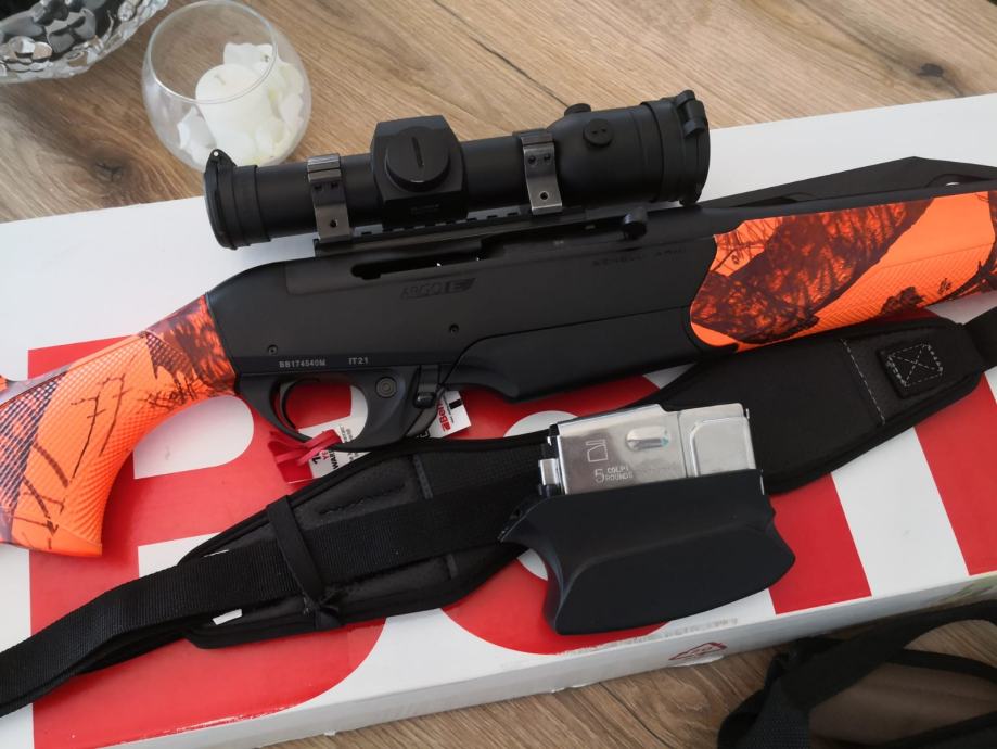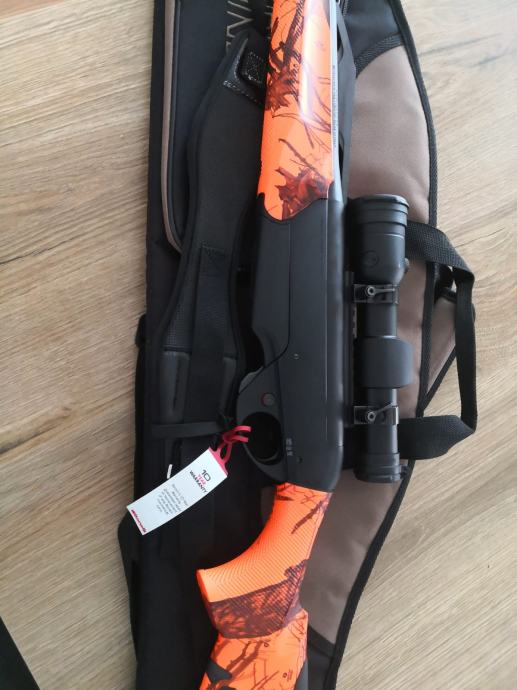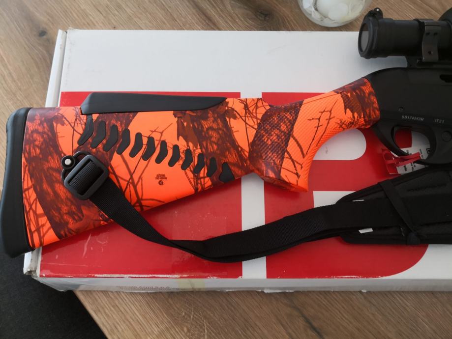 Benelli argo battue cal 30.06 camo potpuno nov s crvenom to kom šinom i nosa ima. Futrola remen i original kutija s dva okvira i pločicama za stelanje kundak. Crvenu tocku treba upucat jer nije pucano iz puške Ainpoint H34L Cijena 2500e
