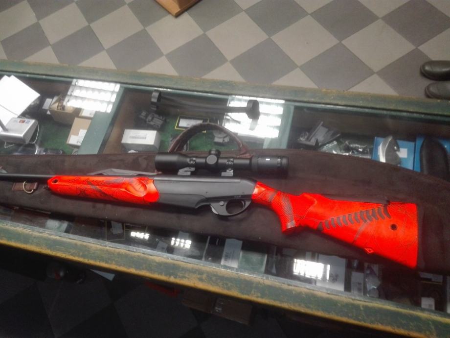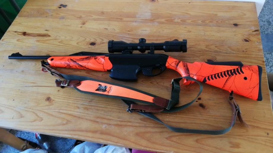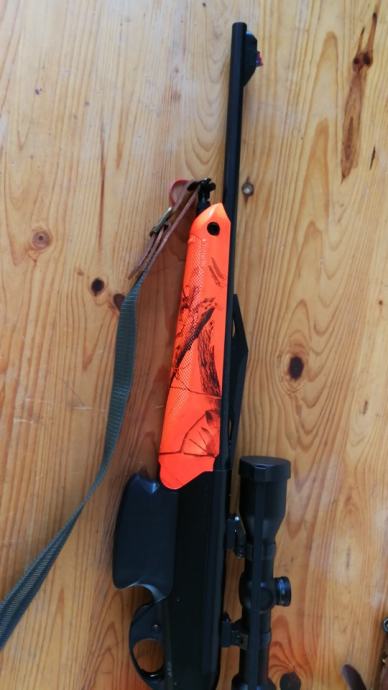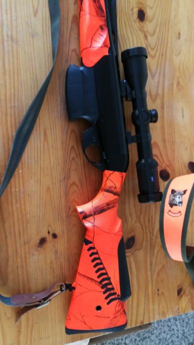 Poluautomatski karabin u kalibru 30-06, optički ciljnik Zeiss conquest DL 2-8x42, Rusan schvenk montaža, dva spremnika za municiju, remen za nošenje, ukupna dužina puške je 102cm(cijev 47cm),kompaktna i praktična za pogon, sve pod garancijom i u odličnom stanju.