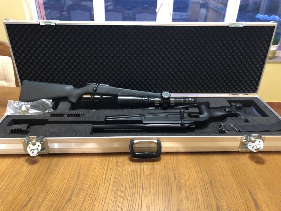 5.8-40x56 koncanica Shx-MOA 13. Uz Pušku dolazi kufer , nosač za optiku , kompenzator trzaja , traka za pucanje koja se stavlja iznad cijevi a sprjecava titranje cijevi .