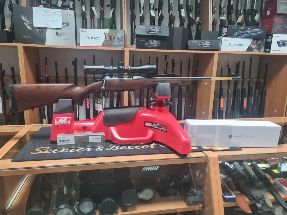 Karabin s odličnim Battue nišanima za brzo reagiranje, prekrasnim drvenim kundakom i odličnim zatvaračem za brzo repetiranje. Hawke optika se slaže s kompletom zbog svog varijabilnog povećanja od 3 do 9, što odgovara raznim vrstama lova.