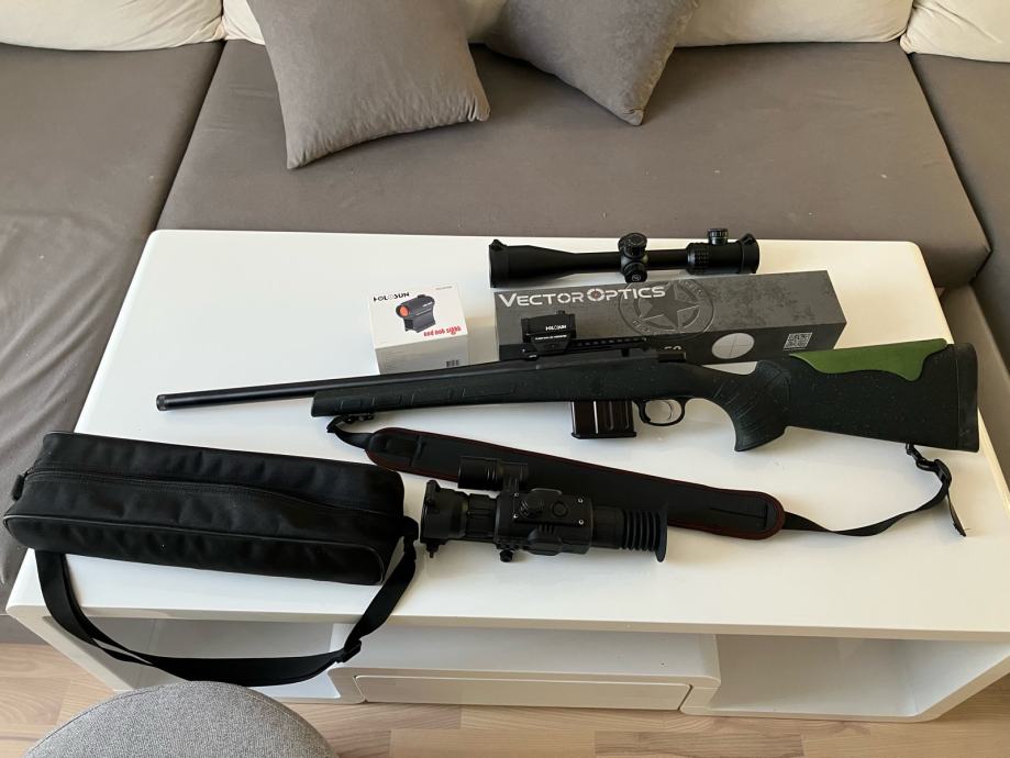 Prodajem komplet CZ 557 Varmint u kalibru 308win, kupljena u 9 mjesecu 2021, jako malo koristena. Cijev duzine 50 cm. Uz nju ide nova novcata optika 6-24x50, nikada koristena. Kupljena 20.12.2023. I ima 15god garancije. Crvena tocka Holosun 2moa kupljena 20.10.2023. I nocna optika Yukon Sightline N450S sa jos jednom rezervnom baterijom.