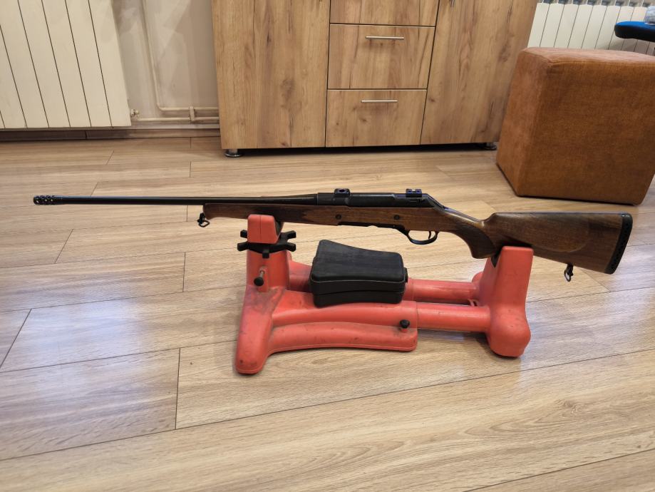 Karabin je kupljen nov, prvi sam vlasnik. Maksimalno očuvan kao što se i vidi na slikama. Metalni odvojivi spremnik kapaciteta 5 metaka. Dužina cijevi 56 cm. Ugrađena plinska kočnica (kompenzator trzaja), Rusan schwenk montažom, prsteni 30mm i brzo skidajuće alkice za remen. Molim samo pozivi na broj +385 98 364 563