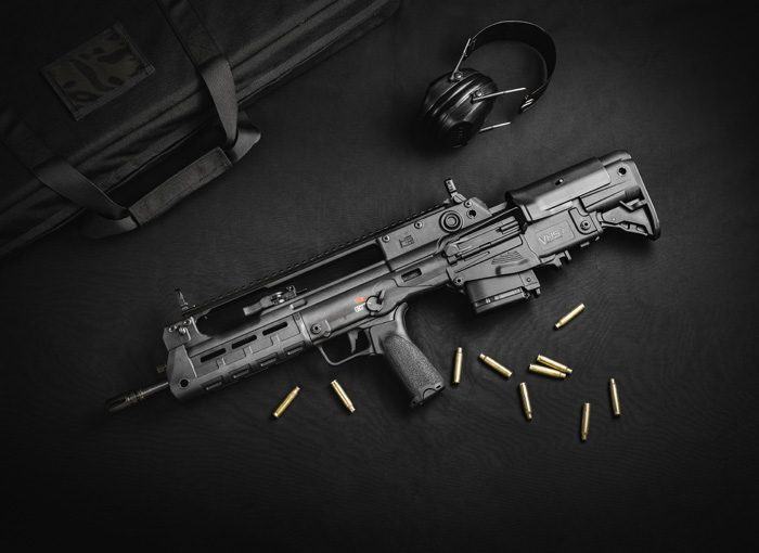 HS Produkt VHS-2S poluautomatska puška sa svake strane posjeduje po tri QD utora za spajanje remena za nošenje.