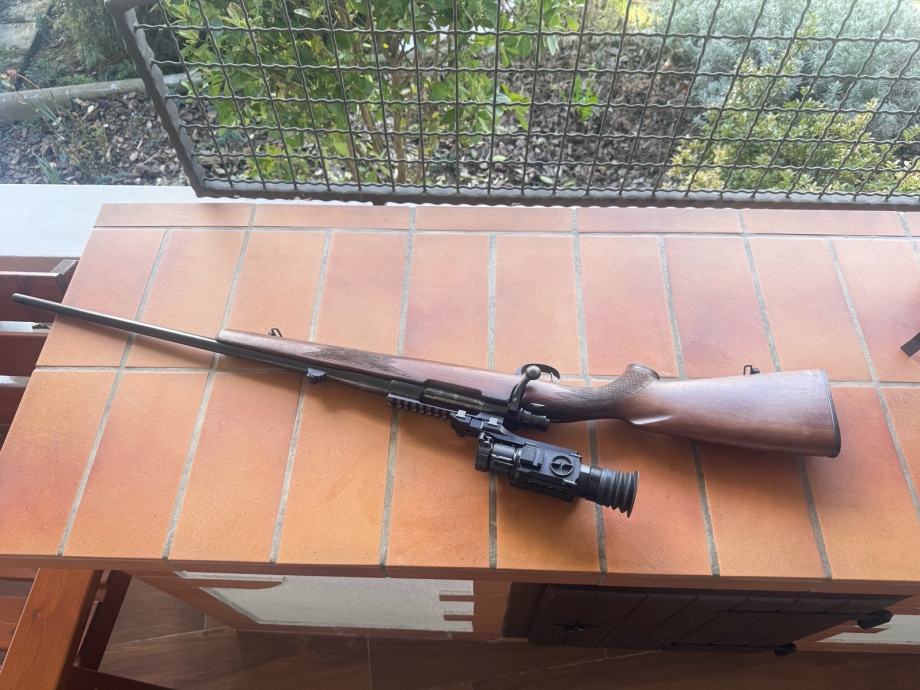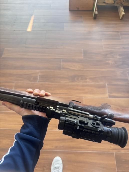 Prodajem rabljeni karabin CZ u kalibru .30-06. Karabin dolazi s montiranim optičkim nišanom za noćno gađanje Pard (nikada korišten), postavljenim na picatinny šinu. Kundak je drveni, a cijev i mehanizam su metalni. Sve je u funkcionalnom stanju, pogodno za lov.