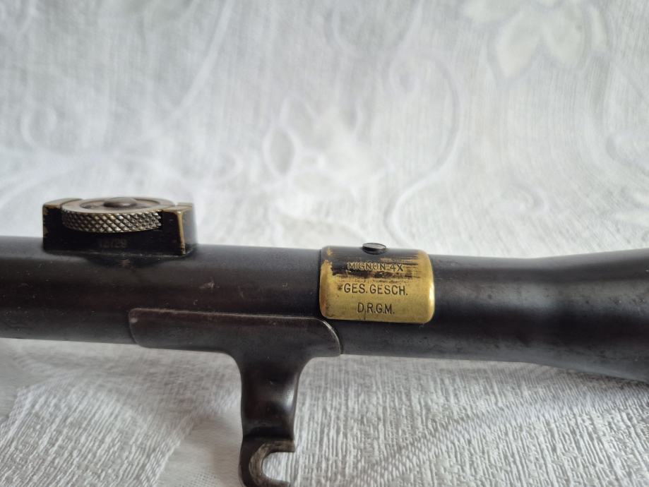 Optika Karl Kahles Mignon 4x, za snajper iz WW2,njemačke vojske. Vrhunsko stanje, jako očuvan, opruge za pričvršćivanje kao nove, leće nisu nigdje izgrebane.