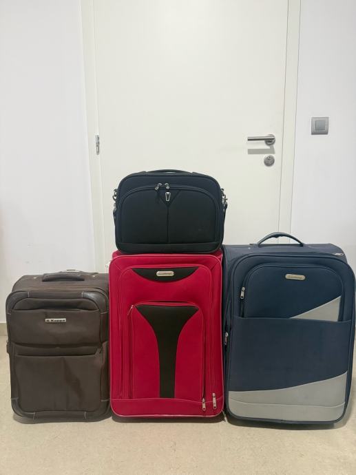 3 kofera od tkanine i kozmetička torba, rabljeno.