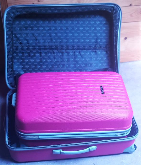 Koferi su lagani i čvrsti izrađeni su od visokokvalitetne i čvrste plastike rebrastog dizajna, te dolaze u modernoj ružičastoj boji. Imaju 2 kotača i teleskopsku ručku na izvlačenje što omogućuje rukovanje bez muke i ručku sa strane. Idealni su za druga ili kratka putovanja i odmore.