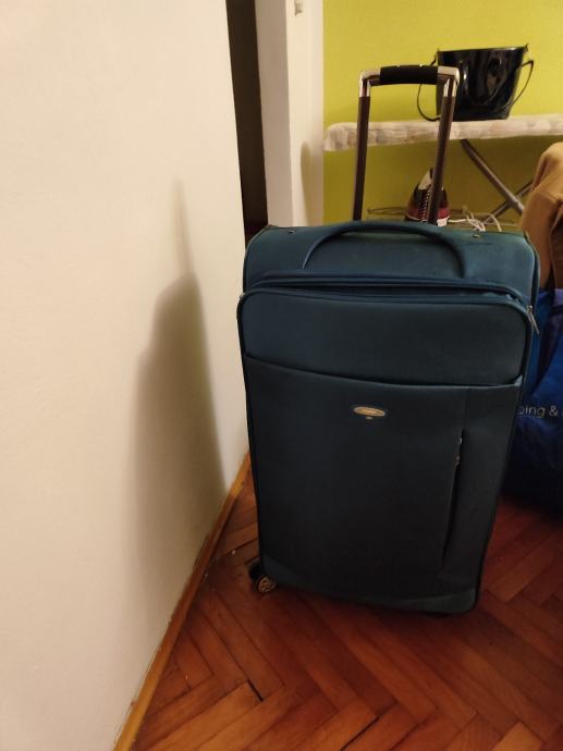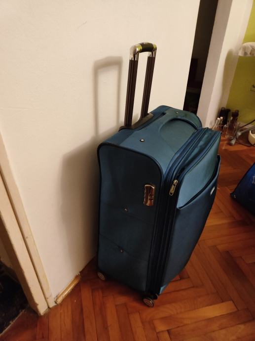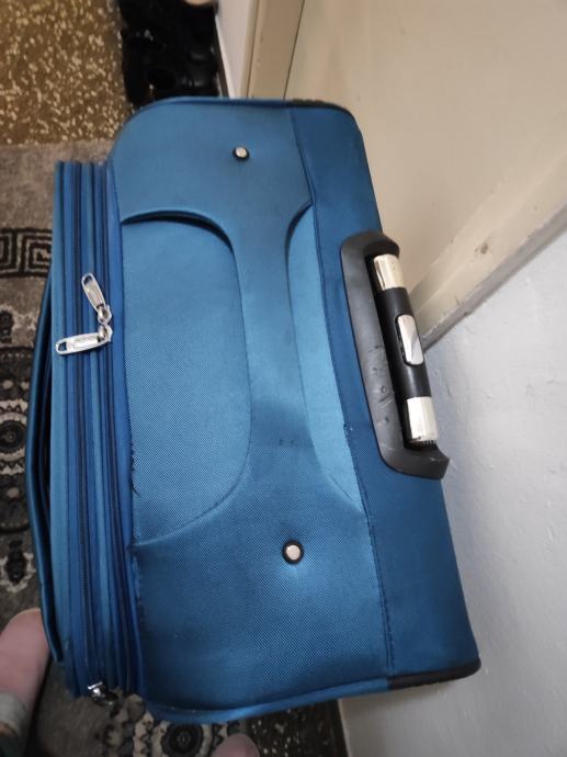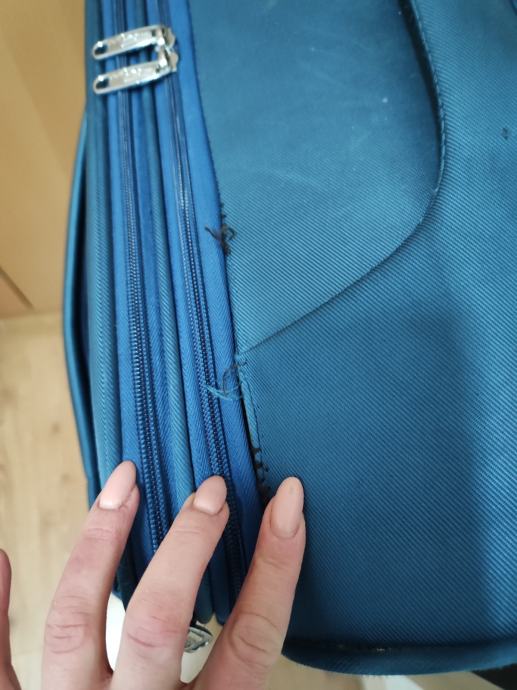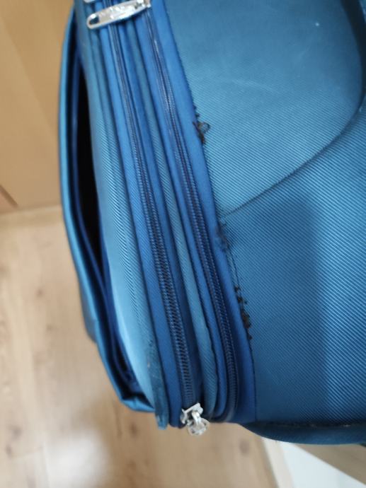 Jako veliki kofer 80*47cm, oštećenje na slici malo ga treba zašiti jer ne izgleda lijepo ali čak ni ne morate jer nije otvoren