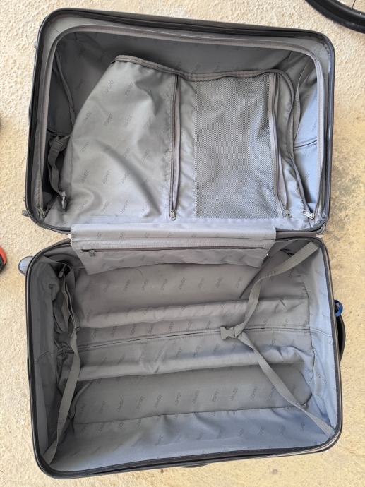 Prodajem kofer koji je visak. Obisao svijet. Unutarnji dio izgleda kao prvog dana. Vani ima samo rubno napuknuce no zbog unutarnjih opruga i dalje je izdrzljiv.