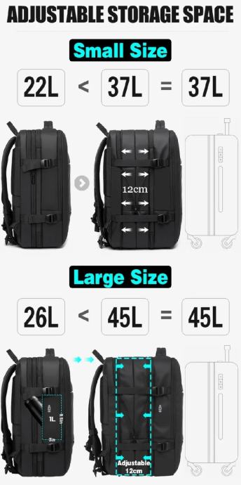 22L (proširivo na) 36L (Dimenzija za rucnu avio prtljagu)