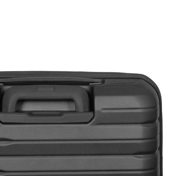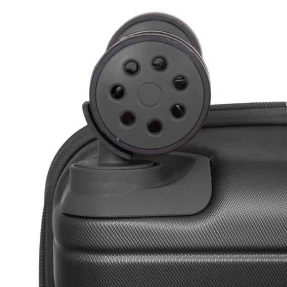 Kofer je opremljen s osam rotirajućih kotačića koji omogućuju lagano i glatko kretanje u svim smjerovima, čime se smanjuje opterećenje na ruke i ramena. Tu je i aluminijska sklopiva ručka s prilagodljivim visinama, koja pruža dodatnu praktičnost pri transportu.