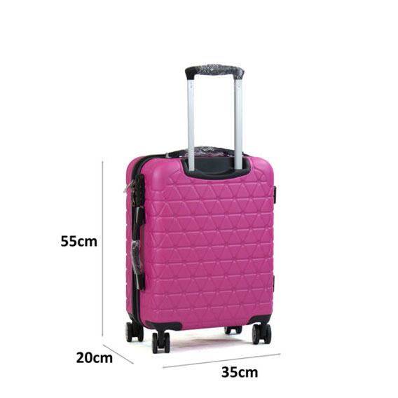 Putni kofer izrađen od kvalitetnog ABS plastičnog materijala. Zahvaljujući ABS plastici, vanjski dio kofera je vrlo fleksibilan i mekan, tako da vrlo teško može puknuti u transportu. Dimenzije kofera: 55 x 20 x 35 centimetara. Ima aluminijsku ručku podesivu po visini koja služi za vučenje kofera, te 2 plastične gumirane ručke (1 na okomitoj strani + 1 na vodoravnoj strani) za nošenje kofera.