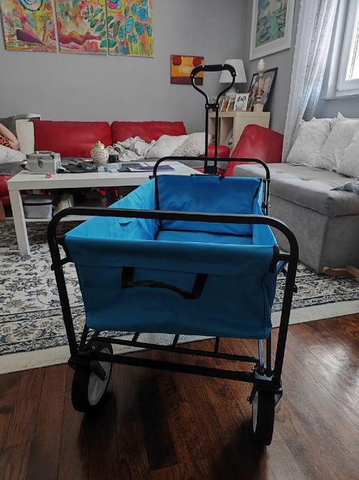 Prodajem kolica za plažu, nova, zapakirana, dimenzija 88x51x58/117, nosivosti do 80 kg, sama imaju masu od 9,8 kg. Cijena 93 eura, lokacija Bjelovar