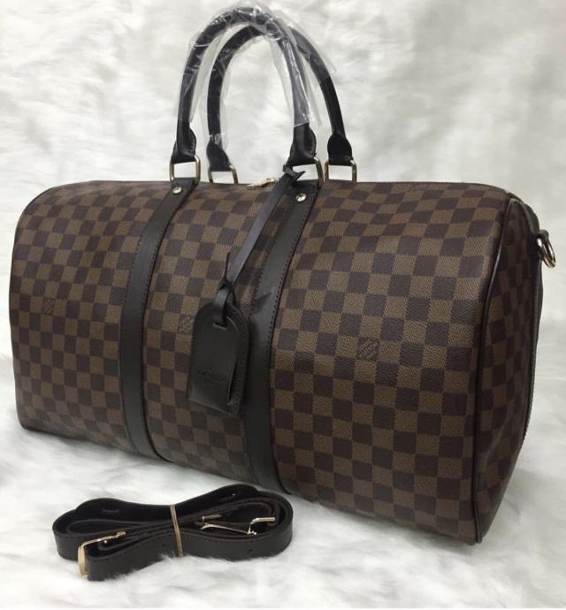 Louis Vuitton kocka smeđa putna torba. Kvaliteta putne torbe je 1:1, dakle vrhunska kvaliteta. Na putnoj torbi su i najmanji detalji. Uz torbu dobivate naramenicu i nametag. Cijena putne torbe je 100€.