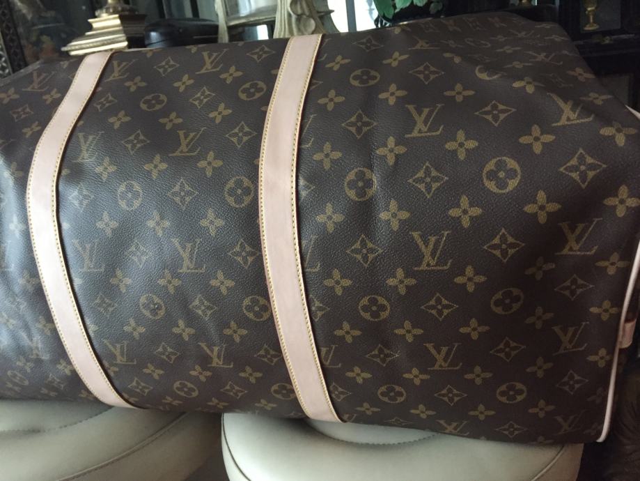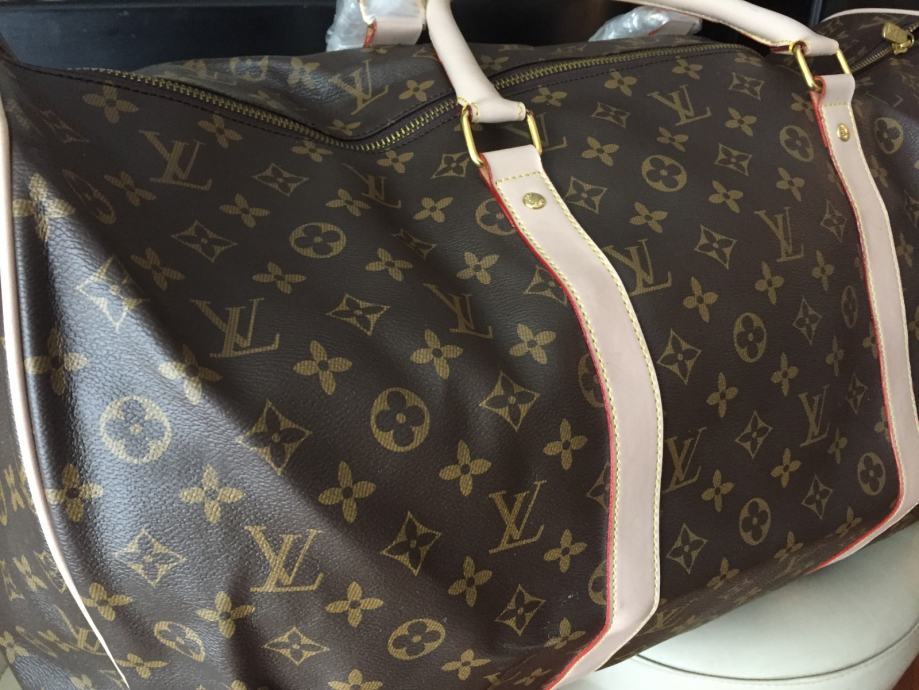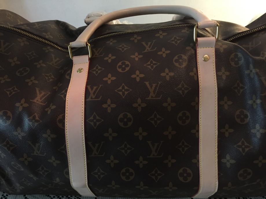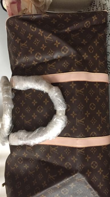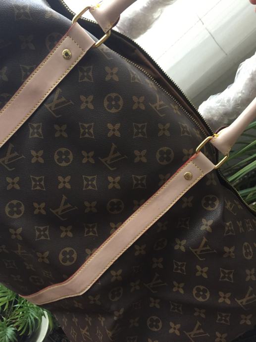 Louis Vuitton kožna logo torba ..većih dimenzija..namjena casual-putna ...na ručke ...kvalitetna replika,eko koža..logo na metalnim gumbima i cifu..nekorištena!