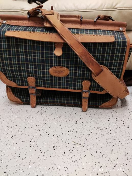 Prodaje se putna torba Manual Company. Kombinacija prava koža i vodonepropusno platno. Ručni rad poznate manufakture. Dužina 50 cm. Puno pretinaca i prostora za stvari. Torba je nošena ali je u vrlo dobrom stanju. Tragovi na koži su od prljave kiše te ih je moguće očistiti odgovarajućim sredstvima.
