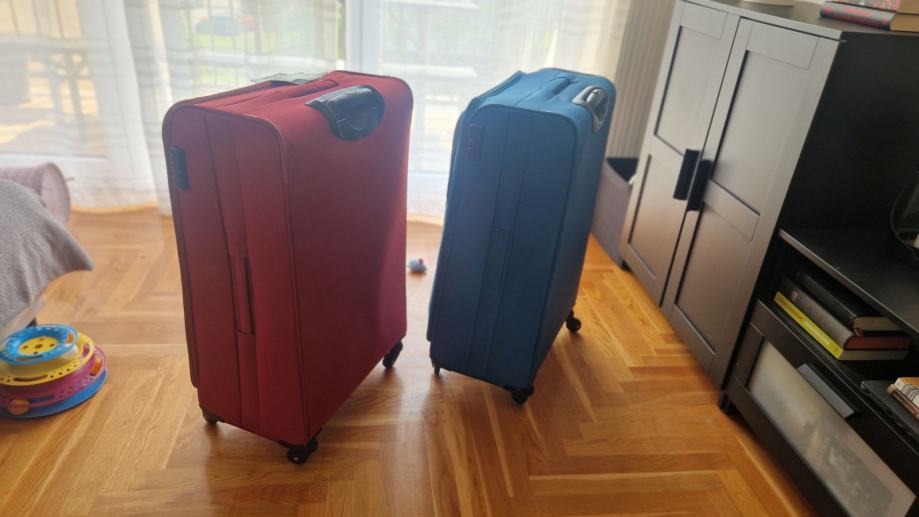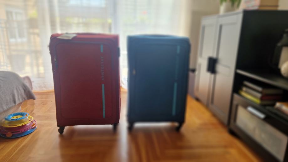 Prodajem 2 velika kofera Aristocrat (jedan plavi i jedan crveni). koferi su skoro novi, kupljeni ove godine, i u odličnom stanju. Lagani su, prostrani i lako je s njima upravljati. Dimenzije kofera su 38*61,5*43 cm (max. koliko može u avion po standardnoj cijeni).