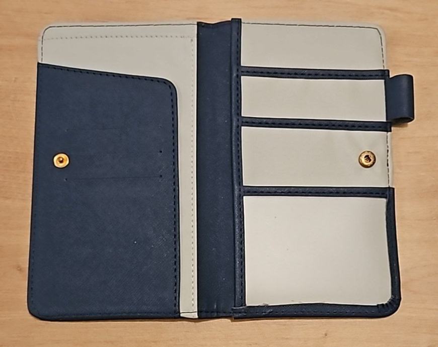 Dimenzije sklopljenog "novčanika" su 11 cm × 18,5 cm. Ima puno pretinaca raznih veličina.