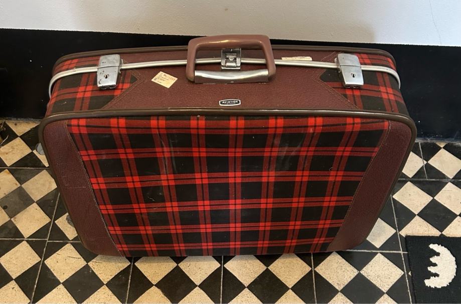 Retro kofer karirani iz sezdesetih, velicine 60x40x15 sa dva kotaca izvrsno stanje
