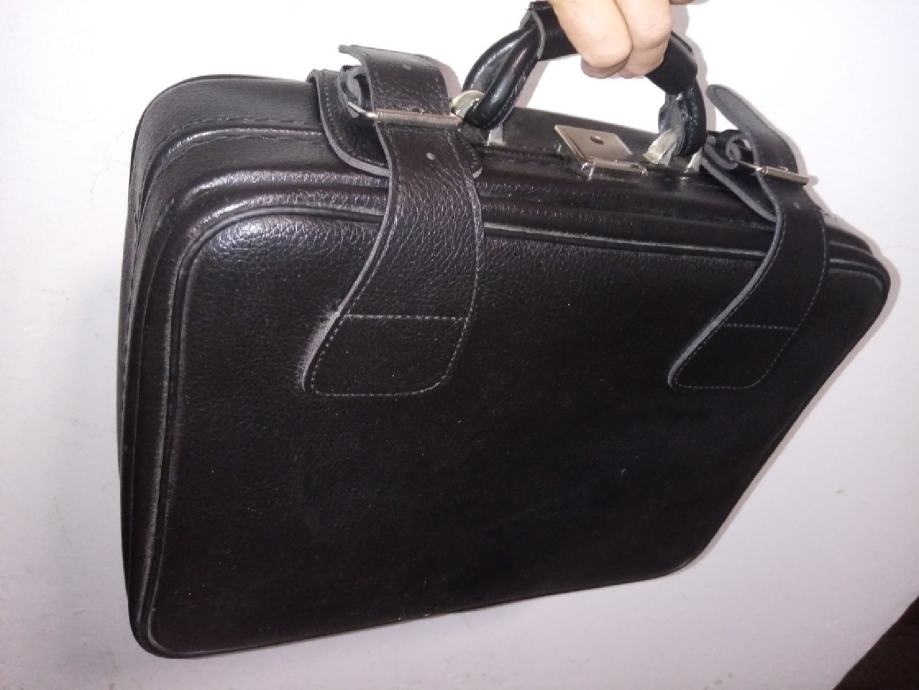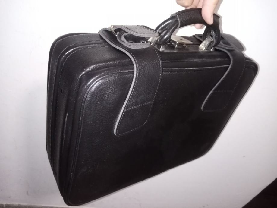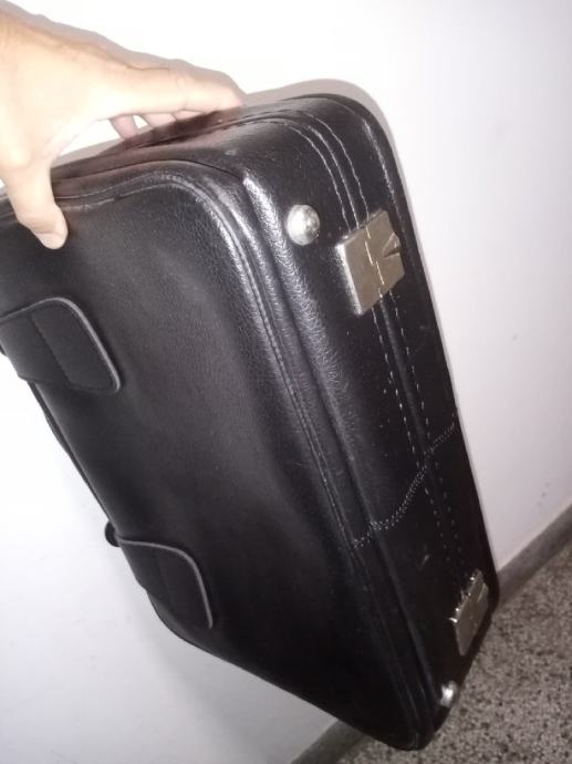 Kvalitetan i odlično očuvan retro crni kožni kofer.