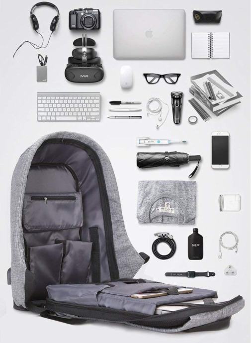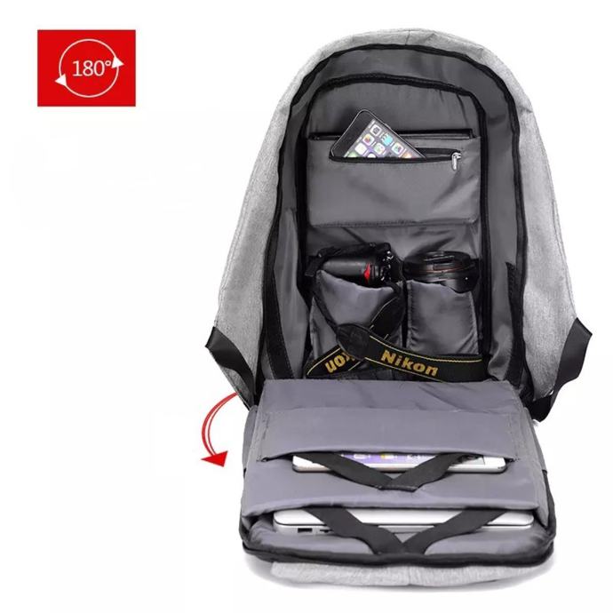 Ruksak je napravljen od visokokvalitetnog poliestera. Zahvaljujući posebnom dizajnu protiv krađe, ruksak sadrži brojne skrivene pregrade i džepove te posebno dizajniran način zatvaranja, koji je na pojedinim mjestima dodatno ojačan. Ruksak sadrži reflektirajuće trake koje osiguravaju veću uočljivost noću ili za vrijeme maglovitog vremena. Patentni zatvarač anti - theft je skriven tako da nije moguće otvariti ruksak od strane druge osobe bez da vi to primjetite. Glavne karakteristike su mu materijal otporan na rezanje, skriveni zatvarači i tajni džepovi za koje ćete jedino vi znati da postoje. Izrazito praktičan zbog karakteristika kao što su: integrirani USB utor za punjenje, balans težine, vodootporna tkanina, sigurnosne svjetleće trake i remen za prtljagu.