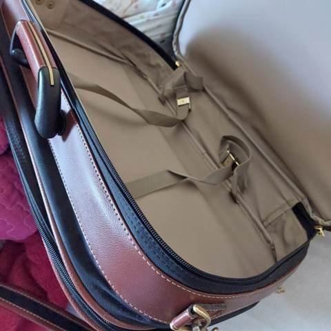 Torba / kofer je dimenzija 60 x 40 cm, a dubina mu je 15. Sa svake strane ima produžetak, a naprijed i duž cijele dužine džep. Kao nov... Ima samo malu ručku i ručku za na rame... Odgovaram na pitanja.