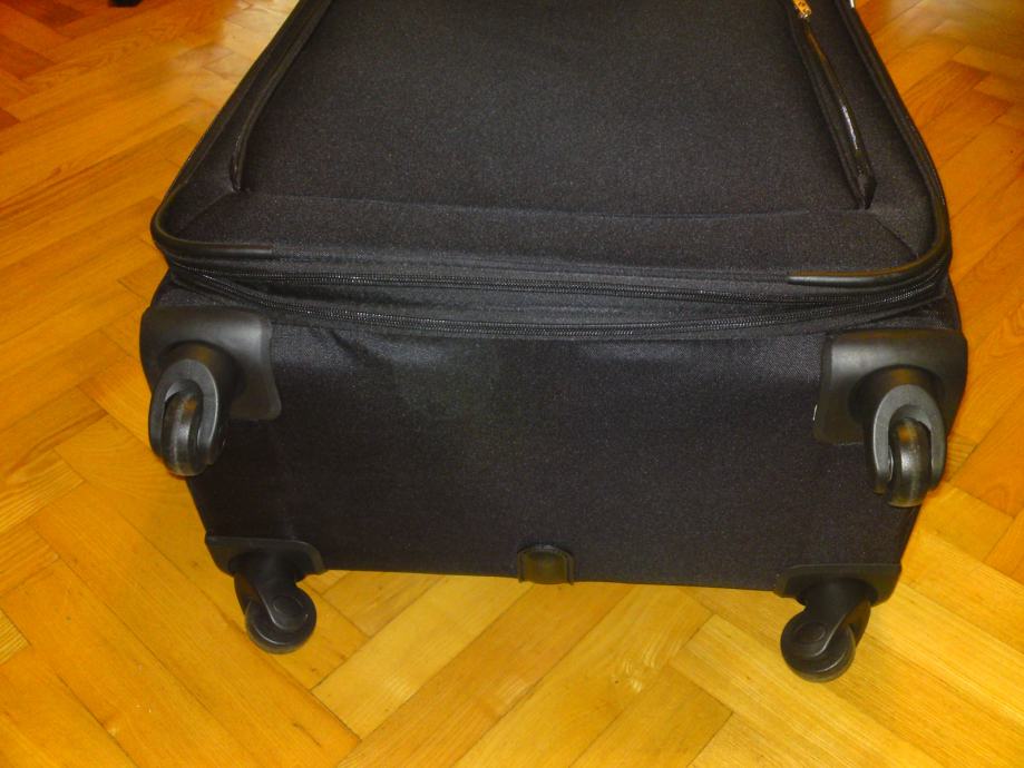 Kofer je na kotačiće i ima lokot za zaključavanje sa šifrom. Ima teleskopsku ručku. Ima garanciju .