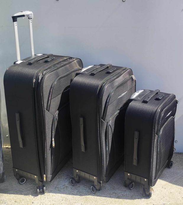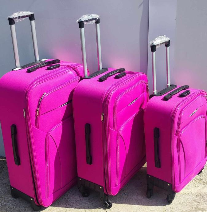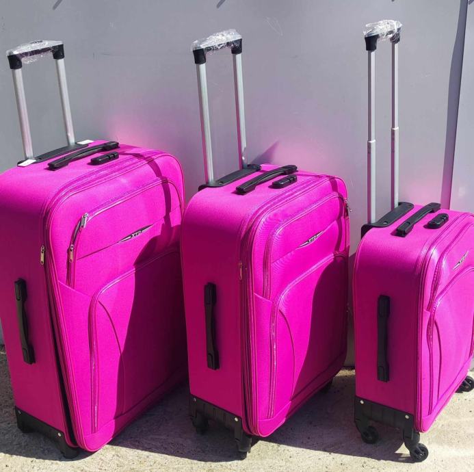 set od 3 kofera na kotačima u tri boje ;crni set.sivi i rozi...,bočna ručka i ručka na izvlačenje..šifra za zaključavanje ..